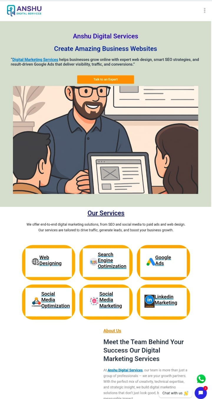 At Anshu Digital Services, we believe that every business—whether local or global—deserves an impactful online presence. With roots in Allagadda and a passion for smart digital growth, our team blends creativity, technology and strategy to help you stand out, get noticed and convert visitors into loyal customers.